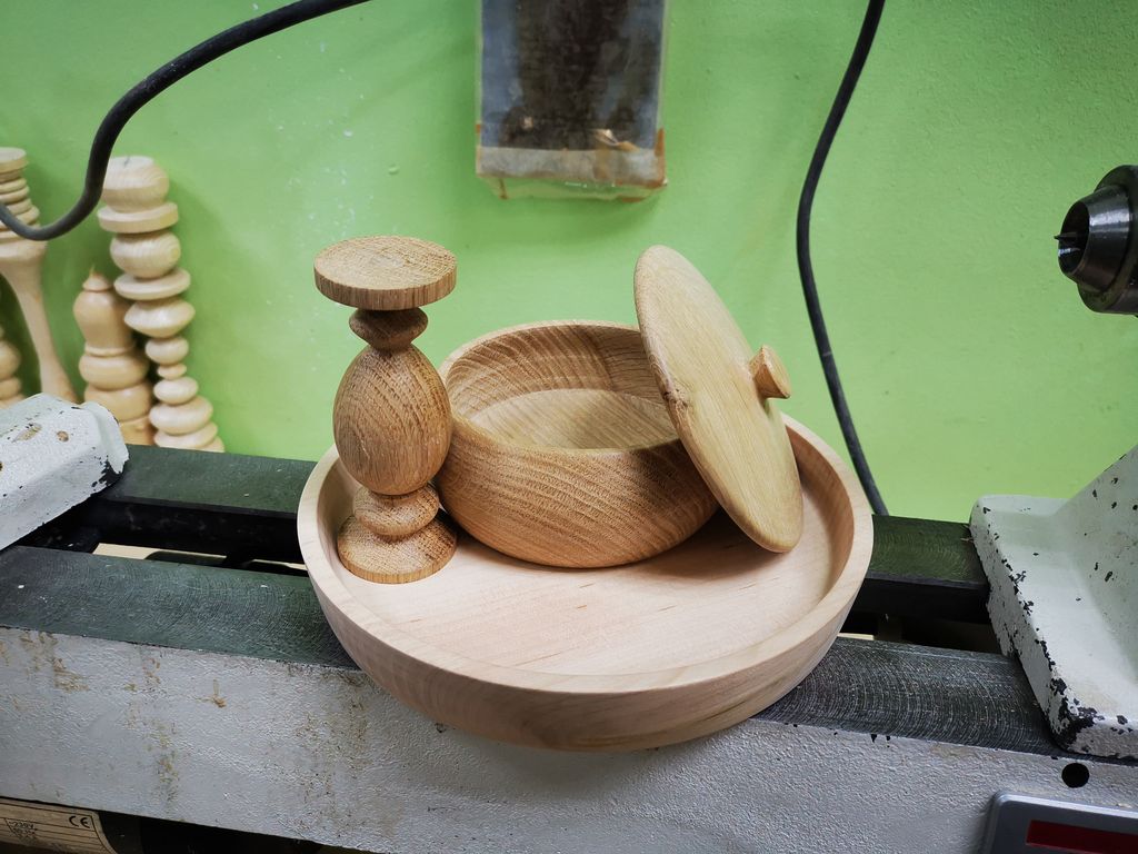 В рамках базового токарного мини курса изучается техника точения заготовки в центрах, изготовления тарелки, а также пиалы с крышкой.