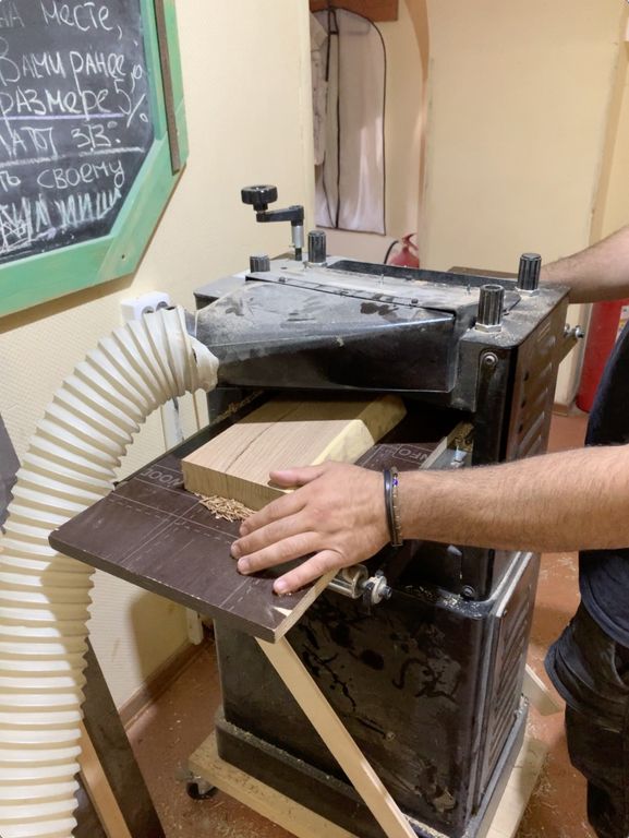 Ознакомление со всем необходимым инструментом: дисковой ручной пилой, рейсмусом, торцовочной пилой, несколькими видами шлифовальных машинок и т.д.