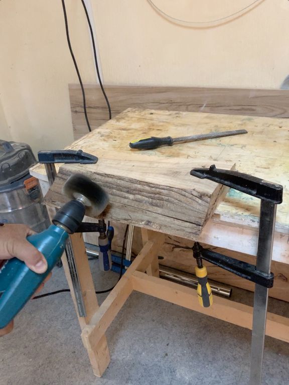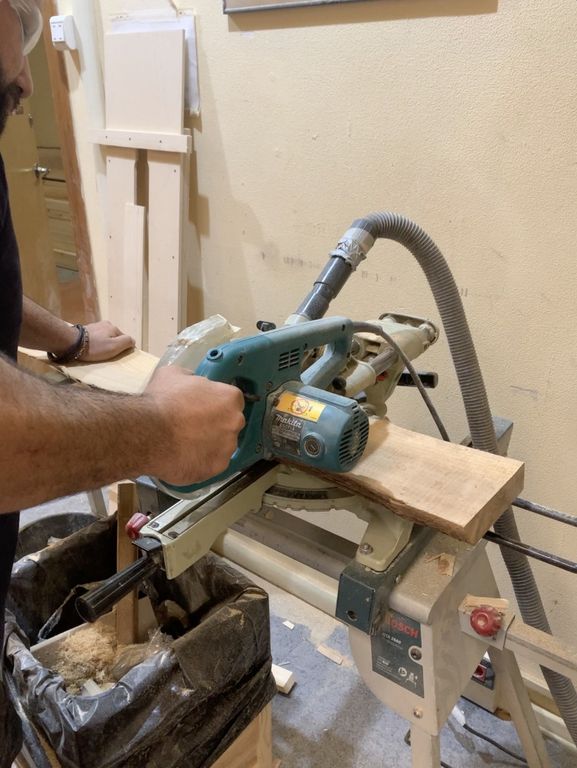 Снятие коры; распил слэба по размерам; выравнивание слэба при помощи фрезера, рейсмуса и фуганка. Правка размеров.